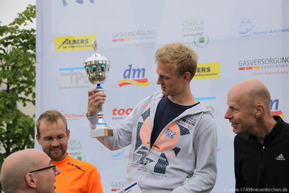 Der Höhepunkt war für viele der etwa 600 – 700 Zuschauer der Schülerlauf mit 174 Teilnehmern über 1,8 km. Angefeuert wurden die Schüler nicht nur von Ihren Eltern und Freunden, sondern auch von Samba-Trommeln und Cheerleadern. „Das ist schon ein kleines Volksfest hier in unserem Dorf“, kommentierte der Moderator der Veranstaltung, Thorsten Erdmann, die tolle Stimmung. Gewonnen hat den Schülerlauf bei den Mädchen Charlotte Neumann von der Schule am Bodden und bei den Jungen Ole Hennig von der HSG Universität Greifswald.